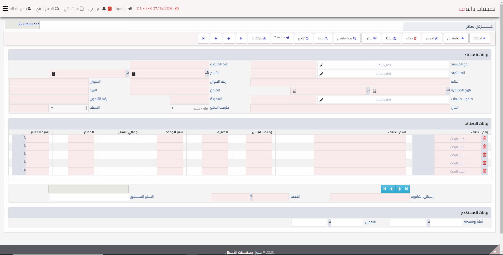 يدعم النظام تحديد سقف الائتمان لكل عميل وطريقه الدفع الافتراضيه و العمله الافتراضيه للبيع و فترات السماح و الخصم، كما يدعم النظام امكانيه تحديد سعر البيع لكل صنف بشكل مختلف من عميل الى عميل اخر، يصدر النظام تنبيهات في حالة تعدي رصيد العميل السقف المسموح به، ويوفر النظام تقرير للعملاء الذي تعدي سقف رصيدهم الدين المسموح به.