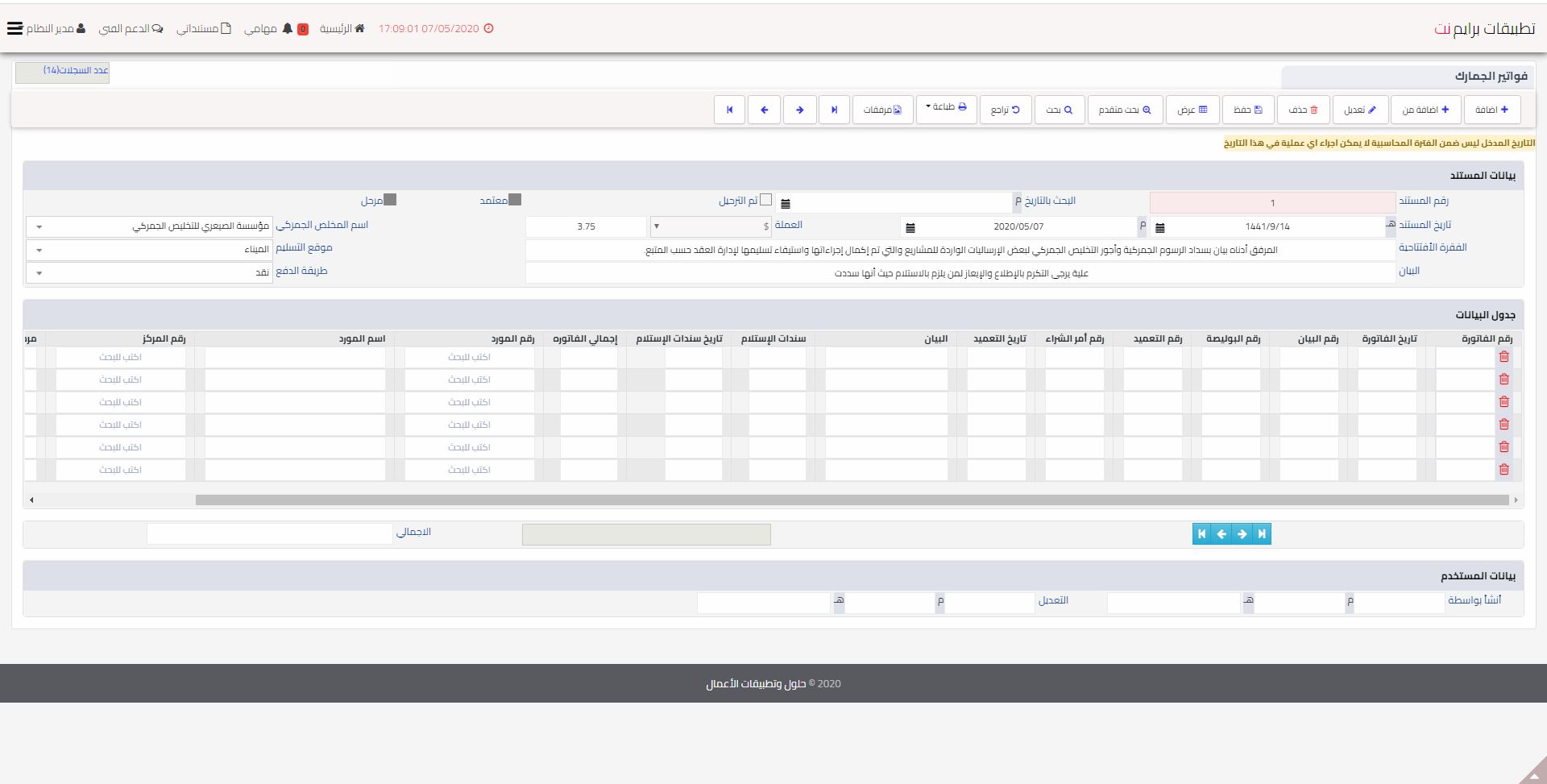 يظهر الننظام تنبيهات لمتابعه تواريخ الاستحقاق وتواريخ الشاحن و تواريخ وصول البضاعه .