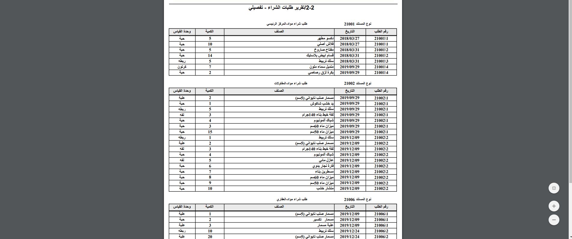 تقارير لكافه مستندات المشتريات( طلب شراء، طلب عرض سعر، عرض سعر مورد، امر شراء، استلام مواد، اذن اضافه، فاتوره جمارك ،عقود الخدمات).